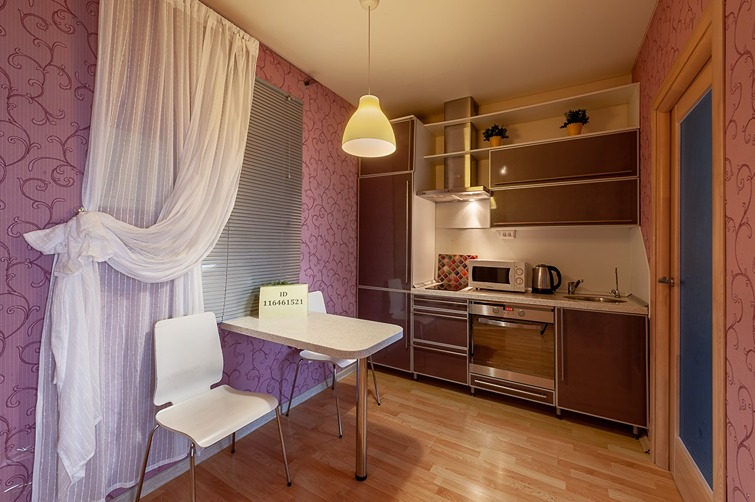 - Оборудование: гладильная доска, духовой шкаф, микроволновая печь, набор посуды, плита электрическая, стиральная машина, телевизор, утюг, холодильник, электрочайник